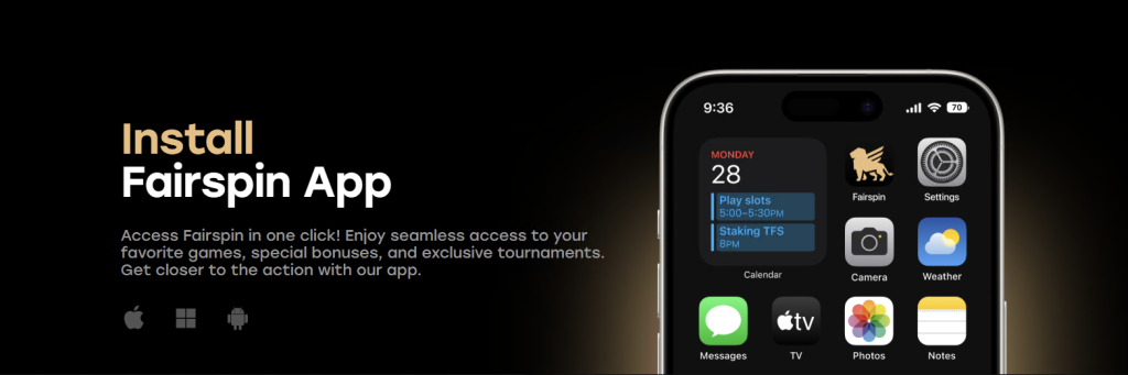 Fairspin përdor teknologjinë PWA (Progressive Web App), që do të thotë se nuk keni nevojë të vizitoni App Store ose Google Play. Thjesht hapni Fairspin në shfletuesin tuaj celular (Safari në iOS, Chrome në Android), klikoni ikonën e shpërndarjes ose menunë dhe zgjidhni “Add to Home Screen”. Kjo do të krijojë një ikonë në telefonin tuaj që jep akses me një klikim në të gjitha 10,000+ lojërat.