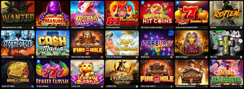 Bërthama e përzgjedhjes së lojërave përbëhet nga mijëra video slote. Këtu takohen estetika klasike dhe mekanikat moderne si Megaways, Cluster Pays dhe jackpot-et progresive.
